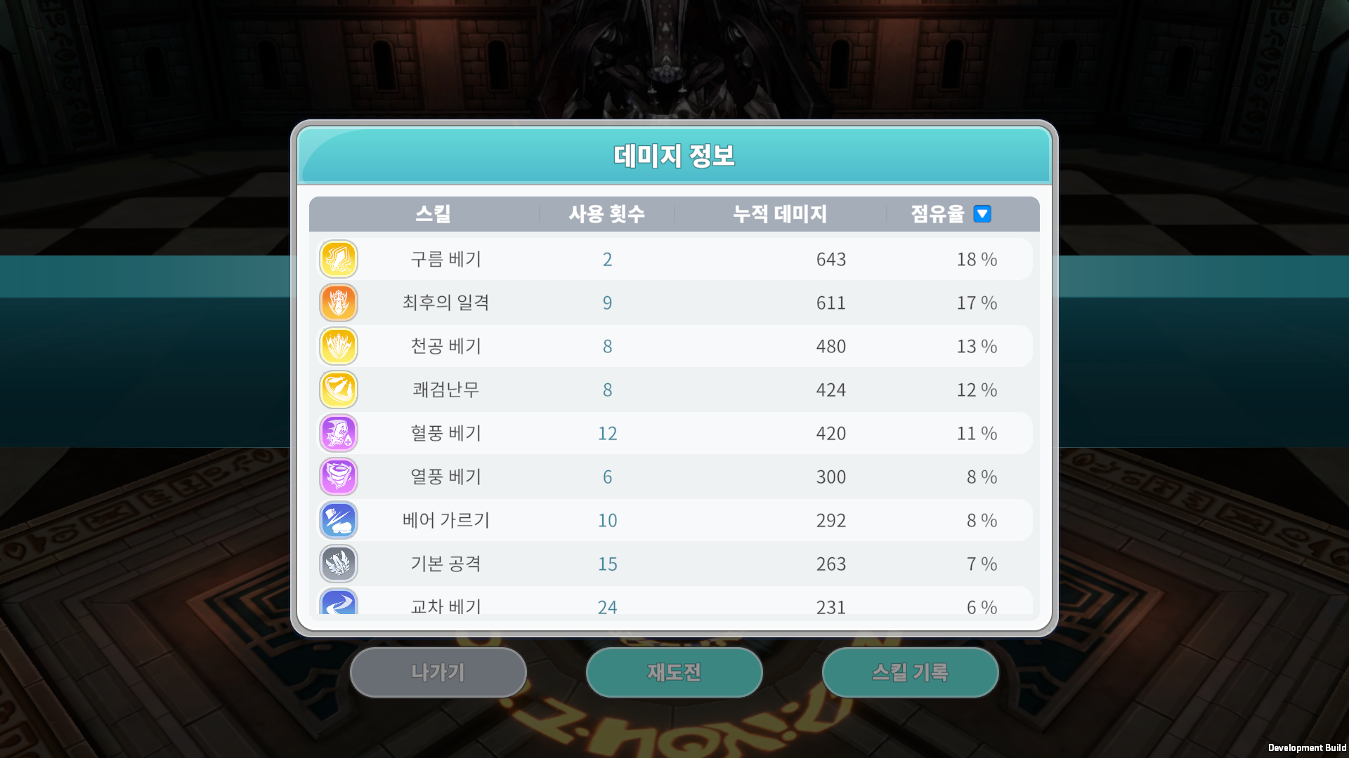 따라서 자유롭게 기록실에 입장하여 스킬 운용 방식이나 장비 세팅의 효과를 객관적으로 확인할 수 있는 지표로 활용하실 수 있을 것으로 기대됩니다.